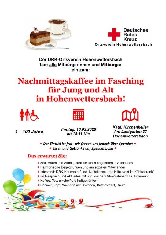 Nachmittagskaffee im Fasching für Jung und Alt in Hohenwettersbach!